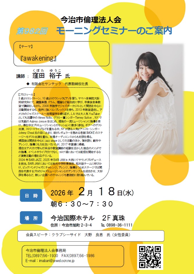 2月18日(水)のモーニングセミナーについて