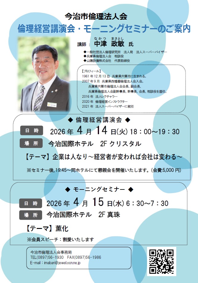 4月14日(火)倫理経営講演会及び15日(水)モーニングセミナーについて